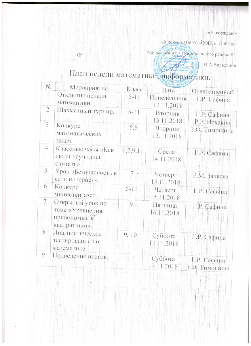Математика атналыгы кысаларында мәктәптә укучылар арасында шахмат турниры һәм 5,8 сыйныфта математик мәсәләләр конкурсы узды.