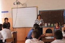 | У нас учат: | 16 педагогов/ 16 педагог, балалар бакчасында 4 тәрбияче, 4 воспитателя |