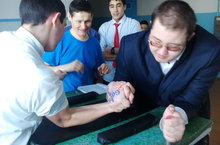 | У нас учат: | 16 педагогов/ 16 педагог, балалар бакчасында 4 тәрбияче, 4 воспитателя |