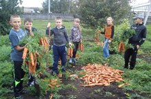 Мәктәп яны тәҗрибә участогында уңышны җыеп алу эшләре башланды.