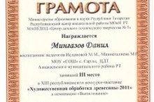 Учащийся 7 класса Мингазов Данил занял 3 место в номинации "Выпиливание древесины" XIII республиканского конкурса "Художественная обработка древесины"(Руководитель Исламова М.М.). Позддравляем!