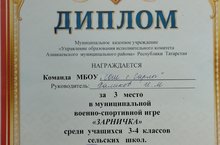 Айлык кысаларында уздырылган "Зарничка" уенында 3-4 сыныфлар 3 урынны яулады.