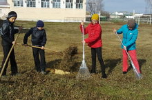 В школе продолжается субботники по очистке территории и беседы по теме экология.