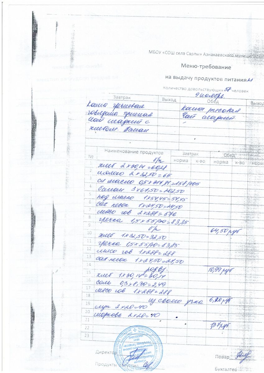 Школьное питание - Укучыларның туклануы