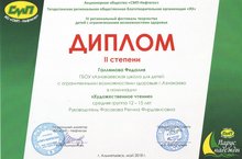 Ученица 7 класса Галлямова Фидалия заняла 2 место в номинации "Художественное чтение" на IV Региональном фестивале творчества детей с ограниченными возможностями здоровья "Парус надежды" (руководитель Фасахова Р.Ф.). Поздравляем!!!