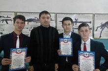Наши победители: Шакиров Ринат (10А класс) занял II место по неполной разборке и сборке автомата Калашникова, Миннегалиев Ильназ (10А класс) занял II место по стрельбе из пневматической винтовки, Муфахаров Айнур (10А класс) - III место по бегу на 1000 метров. Руководитель - Шайхуллин Ранис Фанисович. ПОЗДРАВЛЯЕМ! Гордимся! Желаем дальнейших успехов!