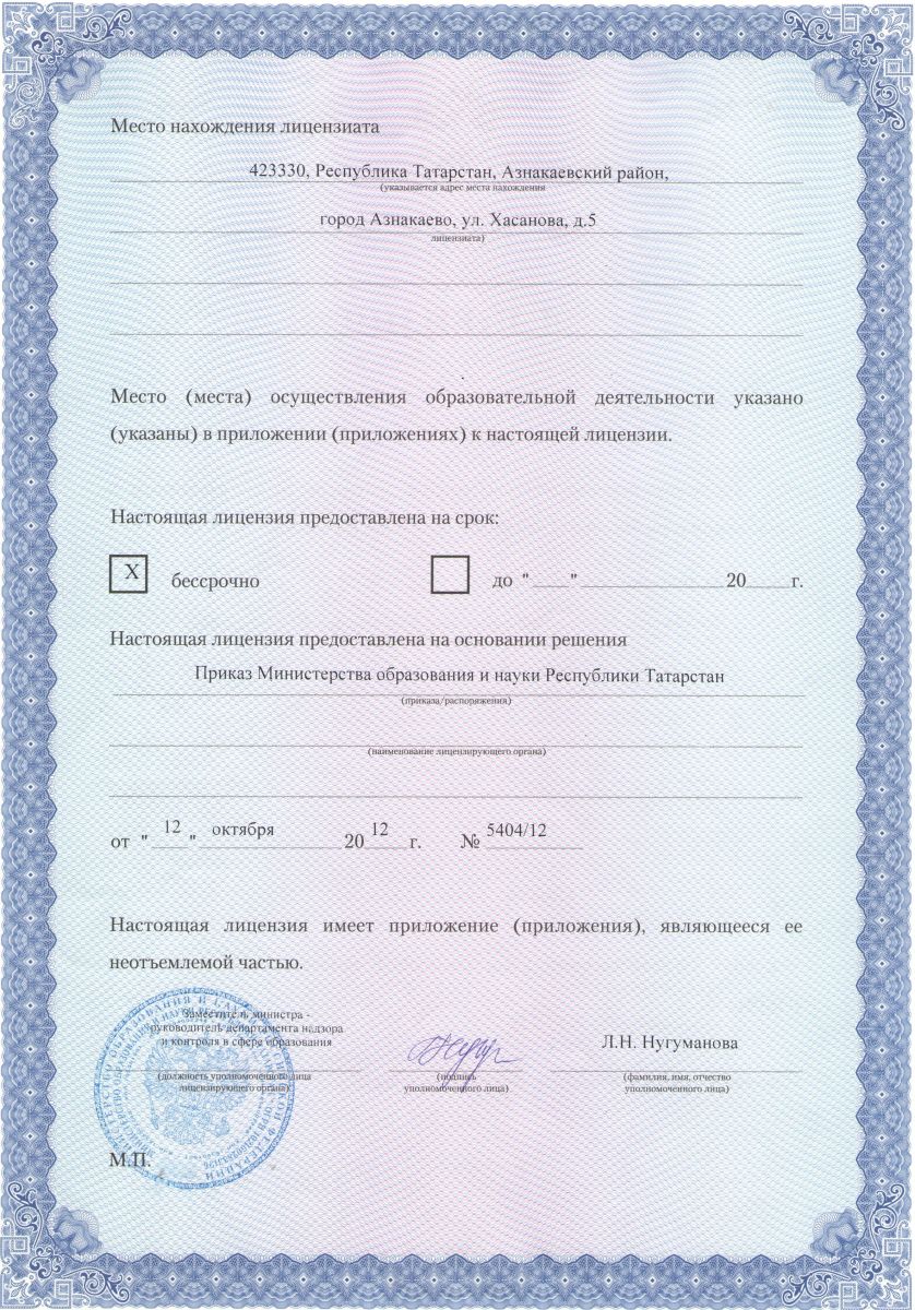 | Адрес: | 423332, Республика Татарстан, Азнакаевский район, город Азнакаево, ул. М. Хасанова, дом 5 |