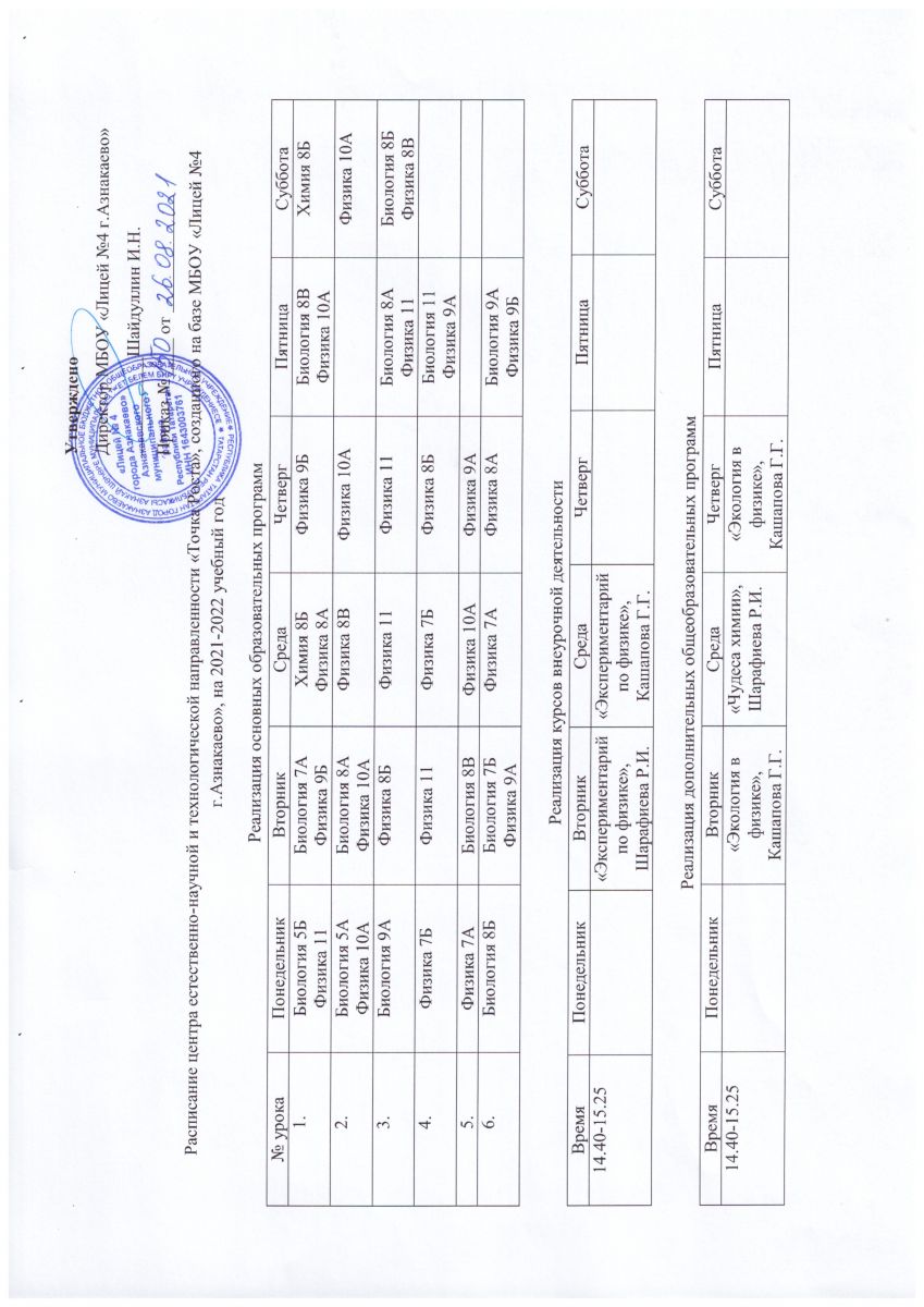 Расписание центра естественно-научной и технической направленности "Точка Роста"