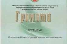 29 - 30 октября состоялся третий (очный) этап XI республиканского конкурса "Использование современных информационно-коммуникационных технологий в образовательной деятельности". Азнакаевский район представляла наш педагог, Муллагалеева Гюзель Идрисовна. Ее работа была отмечена ГРАМОТОЙ МО и Н РТ за "Творческий подход в применении ИКТ в начальной школе". Поздравляем и желаем дальнейших успехов.