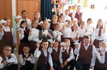 В школе прошла акция «Белый журавль», в рамках которой ребята сделали белых журавлей.
