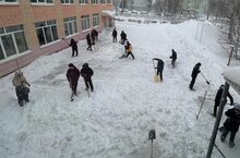 Сегодня в нашей школе прошёл трудовой десант. Ребята 9-ых классов очищали территорию школы от снега. Десант прошел организованно, с хорошим настроением. Спасибо всем участникам трудового десанта! Бүген безнең мәктәптә хезмәт десанты үтте. 9 сыйныф укучылары мәктәп территориясен кардан чистарттылар.