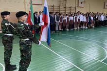 В понедельник 19 сентября в школе состоялась церемония выноса флага Российской Федерации и Республики Татарстан. Право внести флаг предоставляется лучшим ученикам школы, тем школьникам, которые добились выдающихся результатов в учебной, научной, спортивной, творческой деятельности. И сегодня в нашей школе ими стали учащиеся 9 А класса, Хабибуллин Данил и Гараев Ислам. Под марш ребята внесли флаг РФ и РТ. Обучающиеся начальной школы и педагоги исполнили гимн. 19 нчы сентябрь көнне мәктәптә Россия Федерациясе һәм Татарстан Республикасы флагларын кертү тантанасы узды. Флагны кертү хокукы мәктәпнең укуда, спорт өлкәсендә, фәнни, иҗади эшчәнлектә зур уңышларга ирешкән иң яхшы укучыларга бирелә. Бүген 9 нчы А сыйныфы укучылары Хәбибуллин Данил, Гәрәев Ислам бу хокукка ия булдылар.