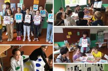 Шестой день. Утро начали с зарядки, с танцев. Затем, на портале " Сакла. Ру", посмотрели учебный фильм, поговорили об обязанностях пешеходов. Для закрепления собрали пазлы со знаками дорожного движения. Несмотря на дождливую погоду, мы очень весело проводим время.