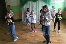 Утро седьмого дня началось с зарядки, с танцев. Затем были игры на свежем воздухе. Погода сегодня была отличная.