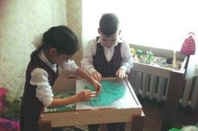 Психолог школы, Латыпова Лиля Алмасовна, систематически проводит групповые и индивидуальные занятия песочной терапией для детей.
