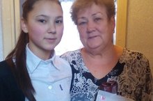 7 марта тимуровцы 8Б класса поздравили ветерана ВОв Аксанову Магиру Фахразиевну с праздником Весны - 8 Мартом.