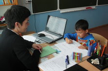 Школьный психолог Марданшина Э. Н. проводит диагностику первоклассников по готовности к обучению в школе.