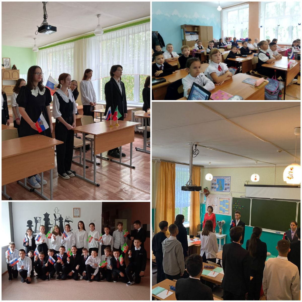 В новом учебном году во всех школах нашей страны ввели цикл внеурочных занятий "Разговоры о важном". Их цель - нравственно-патриотическое воспитание детей, знакомство с традициями, историей и культурой России. Сегодня прошёл первый такой урок, он посвящён Дню знаний. Классные руководители побеседовали с учениками об этом государственном празднике, а также рассказали о платформе "Россия - страна возможностей" и о международных олимпиадах. "Разговоры о важном" будут проходить каждый понедельник первым уроком. Перед этим состоится церемония поднятия государственных флага и исполнение гимнов Российской Федерации и Республики Татарстан.Яңа уку елында илебезнең барлык мәктәпләрендә дәрестән тыш дәресләр циклы кертелде. Аларның максаты-балаларны әхлакый-патриотик тәрбияләү, Россиянең традицияләре, тарихы һәм мәдәнияте белән танышу. Бүген мондый беренче дәрес үтте, ул Белем көненә багышланган иде. Сыйныф җитәкчеләре укучылар белән бу бәйрәм турында сөйләштеләр, шулай ук "Россия - мөмкинлекләр иле" платформасы һәм халыкара олимпиадалар турында сөйләделәр. "Мөһим турында сөйләшү" һәр дүшәмбе көнне беренче дәрес булачак. Моңа кадәр Дәүләт флагын күтәрү һәм Россия Федерациясе һәм Татарстан Республикасы гимннарын үтәү тантанасы булачак.