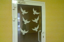 Обучающиеся 4Б класса украсили фойе школы и этаж начального звена белыми голубями к приближающимся Майским праздникам. Спасибо! Молодцы!