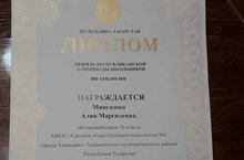 Поздравляем Мингазову Алию, ученицу 10 класса, призера республиканской олимпиады школьников по геологии