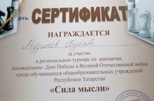 Команда школы приняла активное участие в региональном турнире по шахматам, посвящённом Дню Победы в Великой Отечественной войне, среди обучающихся образовательных учреждений РТ "Сила Мысли".