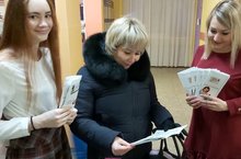 Открытие недели русского и английского языков. Учащиеся 8 класса приветствовали и раздавали буклеты со скоровогорками на английском языке.
