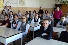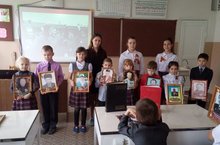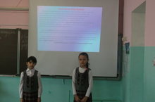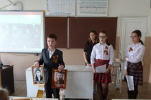 Учащиеся 8а класса Шайдуллина Г, Морозова Н. ,Жигалова Л. на классном часу в 1а и 1б классах, посвященном Дню Победы рассказали о трагических событиях Великой Отечественной войны, о величии подвига наших солдат.