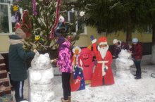 Тимуровцы и член комитета матерей изготовили снежные фигуры.