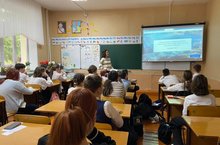 Учащиеся 8б класса во время урока литературы посетили с учителем Артемьевой Л.Г. мероприятие в районной детской библиотеке, посвященное 195-летию со дня рождения Л.Н. Толстого.