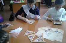 7.05.19 в рамках Республиканского проекта «Шаги Победы-2019» учащиеся 5б класса подготовили треугольные письма в рамках акции «Письмо Победы».