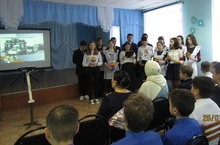 25 января в нашей школе прошло мероприятие, посвященное 75-летию снятия блокады Ленинграда с участием детей войны: председателя совета ветеранов школы Ганиевой З. Н. и члена совета бабушек Мифтаховой С. Х. Мероприятие провели учащиеся 10-11 классов. Они рассказали о трудных днях блокадного Ленинграда, читали стихи. Приглашенные гости поделились своими воспоминаниями, со слезами на глазах говорили о тяжелом детстве, выпавшем на их долю, дали наставления молодому поколению./ 25 нче гыйнвар көнне мәктәптә Ленинград блокадасын алуга 75 ел тулу уңаеннан үткәрелгән чара үткәрелде. Монда сугыш балалары катнашты: мәктәп ветераннар советы председателе З.Н. Ганиева һәм әбиләр советы әгъзасы С. Х. Мифтахова. Алар блокада вакытындагы авырлыклар турында да ёщм шигырбләр сөйләделәр. Кунаклар үзләренең истәлекләре, хис- кичерешләре турында да, авыр балачак хатирәләре турында да сөйләделәр.