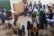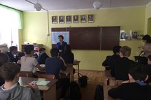 В рамках профориентационной работы 24.01.19 учащиеся 9 классов встретились с представителями Альметьевского торгово-экономического техникума./ 24.01.19 көнне 9 нчы сыйныфларда профориентлашу эшләре кысаларында укучылар Әлмәт сәүдә-икътисад техникумы вәкилләре белән очраштылар.