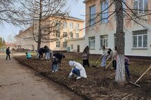 4 апреля учащиеся 7 б класса приняли участие в субботнике на территории школы