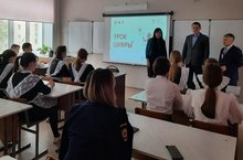 В целях реализации проектов по цифровой трансформации Республики Татарстан 26 апреля прошел "Урок цифры" среди 10-11 классов по теме " Искусственный интеллект". На урок был приглашен управляющий делами Давлетшин Р.Р.