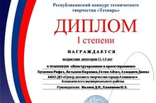 Учащиеся Гатин Айзат и Ахмадиев Данил заняли 1 место в Республиканском конкурсе технического творчества «Технарь»