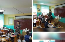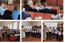 Работники городской детской библиотеки для учащихся 2 б класса провели беседу, посвящённую Великой Отечественной войне, самой крупной войне в истории человечества. Учащимся было предложено нарисовать рисунки для выставки "День Победы". Учащиеся очень ответственно отнеслись к заданию и нарисовали замечательные яркие плакаты.