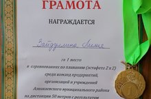 3.12.2021 состоялись соревнования по плаванию среди команд предприятий города. Учитель физической культуры Зайдуллина Л.В. заняла 1 место.Молодец!