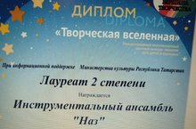 Инструментальный ансамбль «Наз» под руководством учителя музыки Гатауллиной Ф.Н. стал лауреатом 2 степени в международном многожанровом заочном конкурсе талантов «Творческая вселенная».Поздравляем!