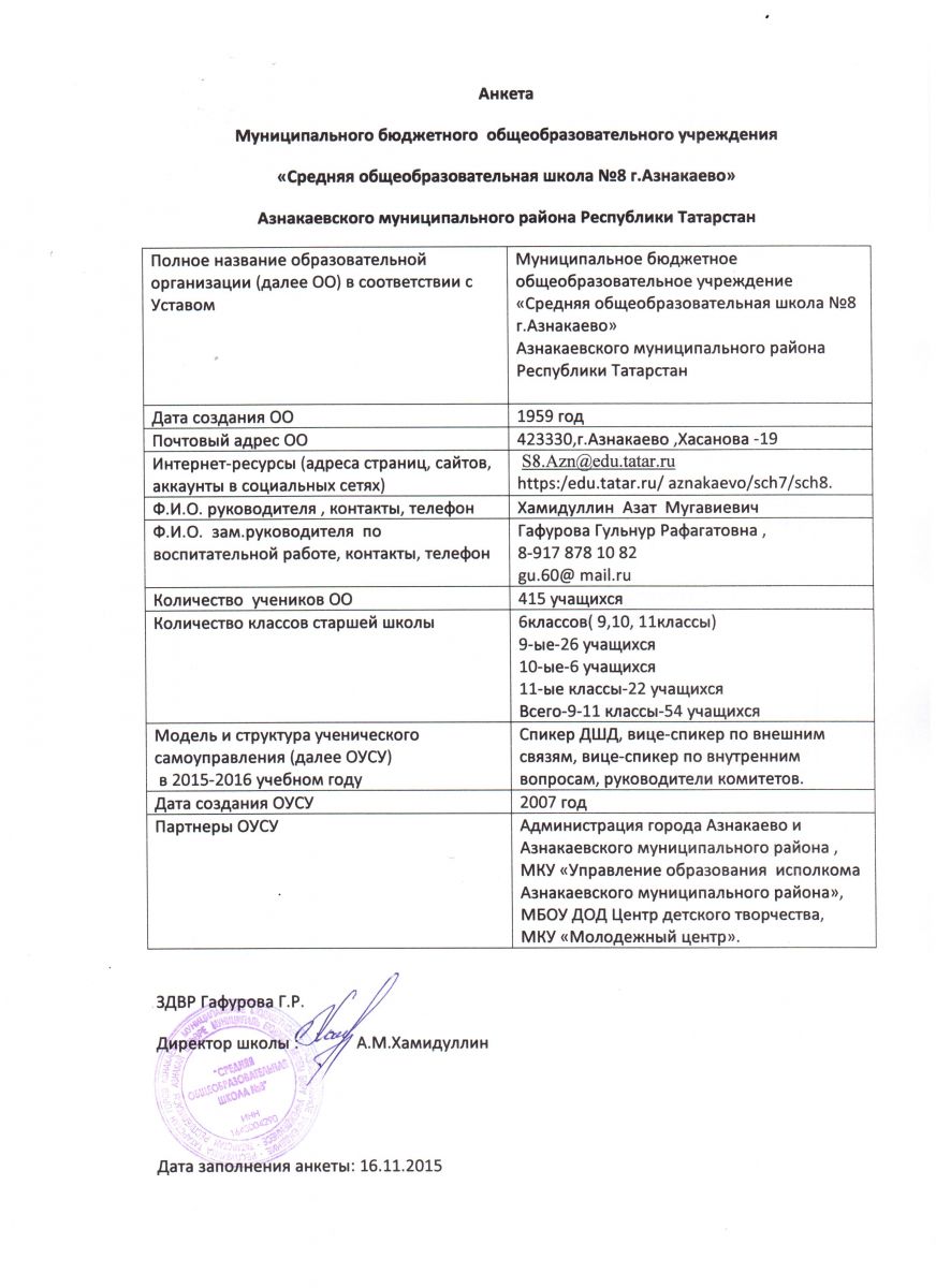 Короткое название: МБОУ "СОШ №8 г. Азнакаево" Азнакаевского муниципального района РТ