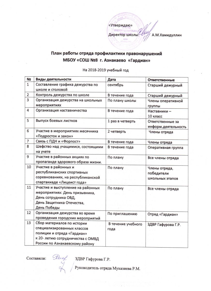 План работы отряда профилактики правонарушений "Гардиан"
