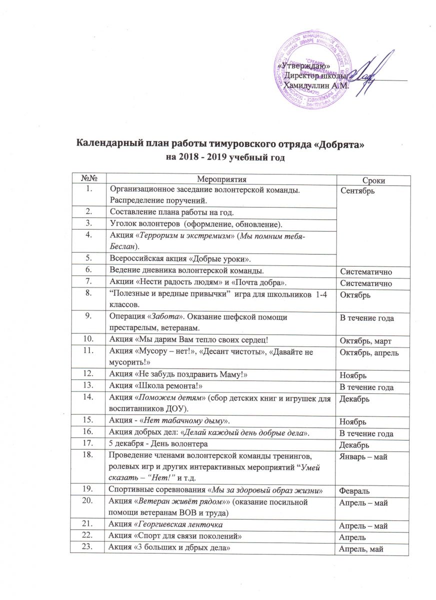 Календарный план работы тимуровкого отряда "Добрята"стр1