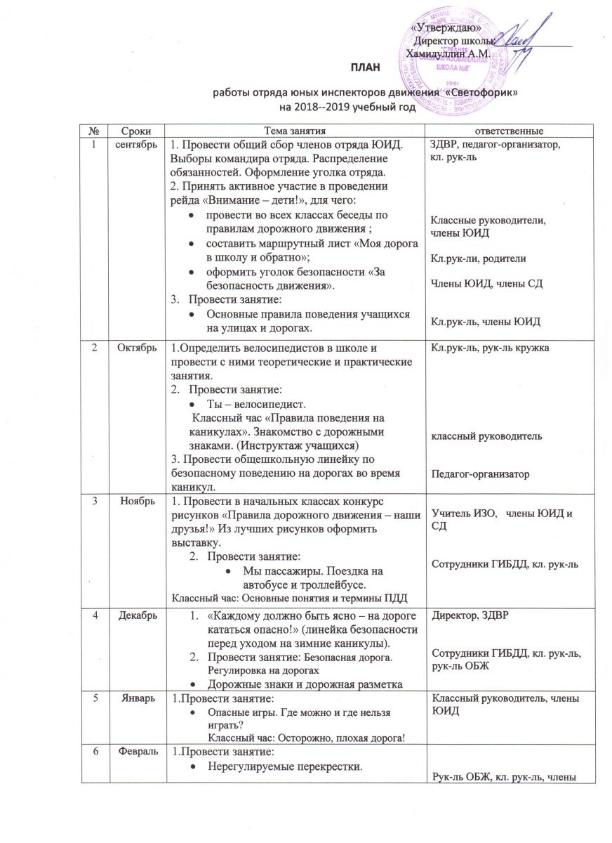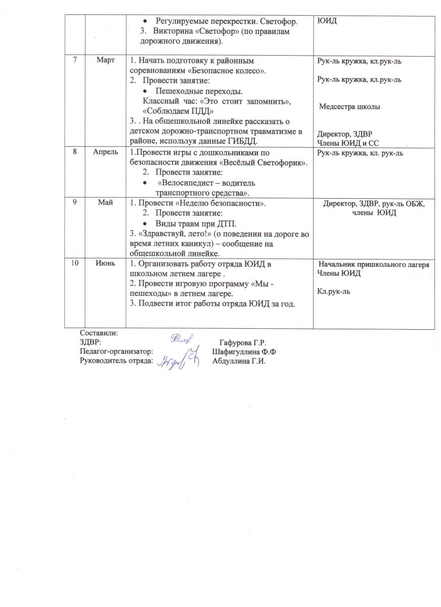 Календарный план работы ДЮП МБОУ "СОШ №8 г. Азнакаево" РТ