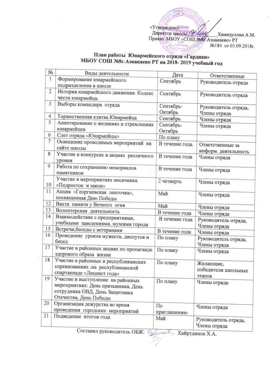 План работы Юнармейского отряда "Гардиан"