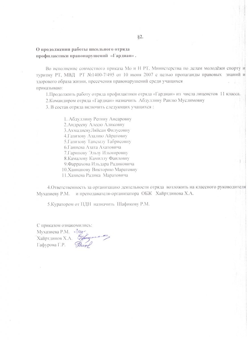 О продолжении работы отряда "Гардиан"