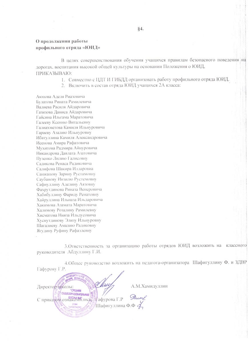 Приказ "О продолжении работы профильного отряда "ЮИД"