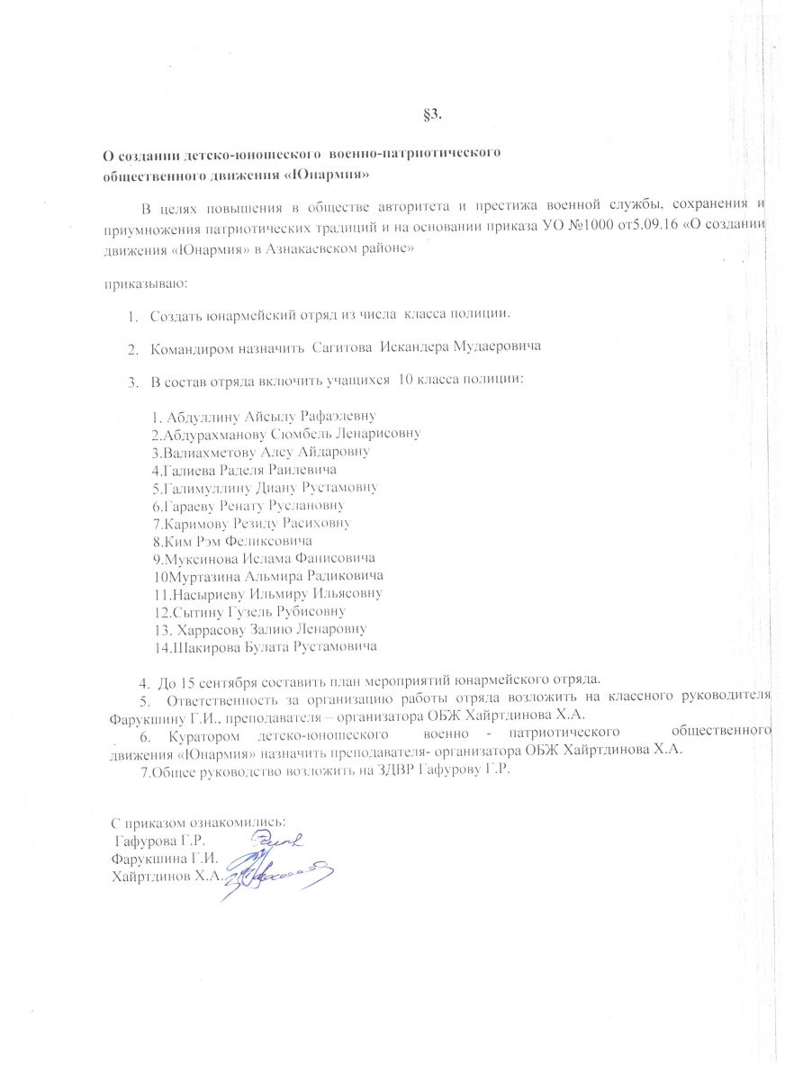 Приказ "О создании детско-юношеского военно-патриотического общественного движения "Юнармия"