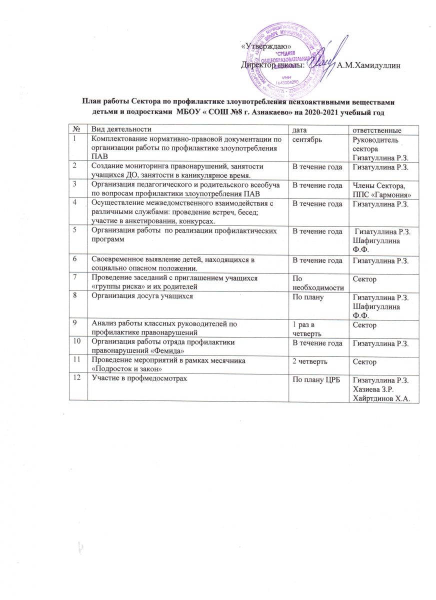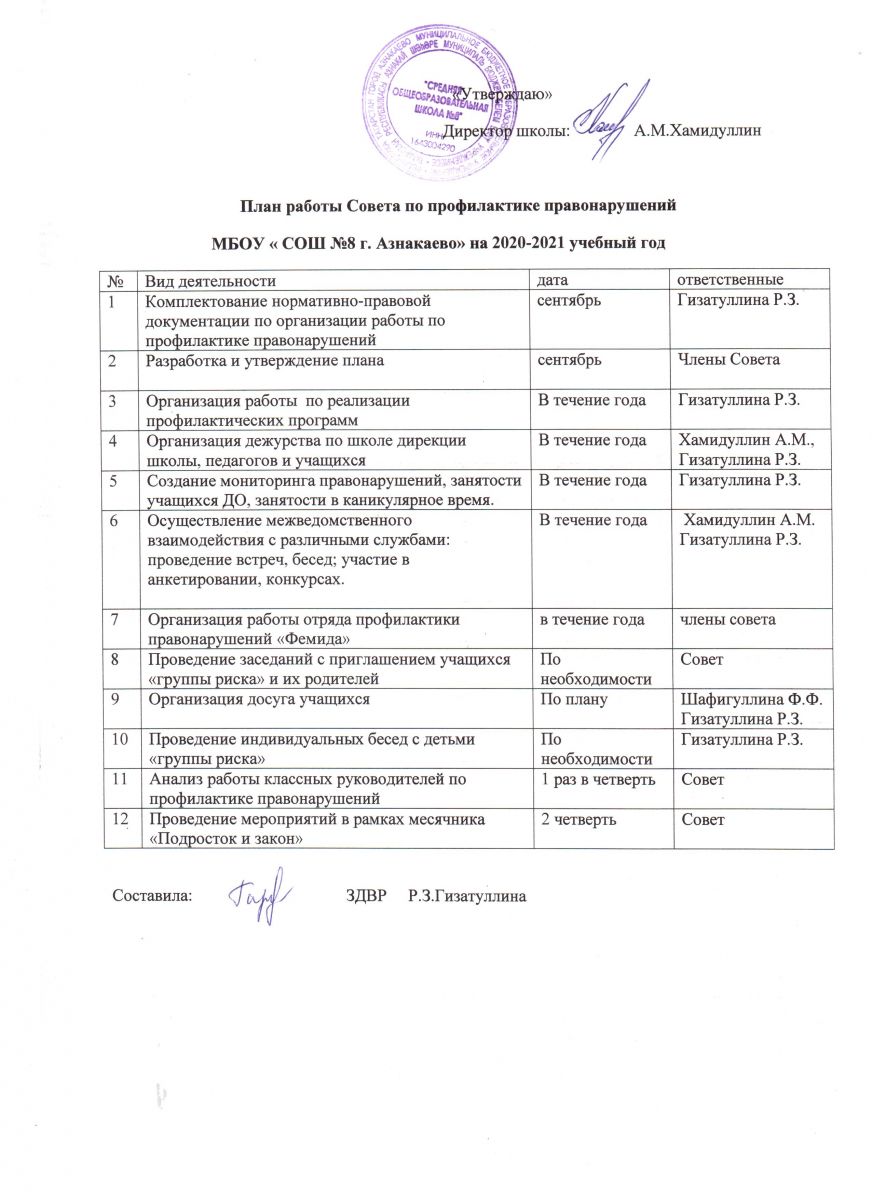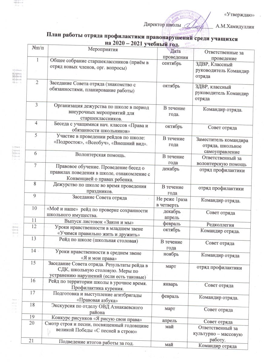План работы отряда профилактики правонарушений среди учащихся на 2020-2021 учебный год