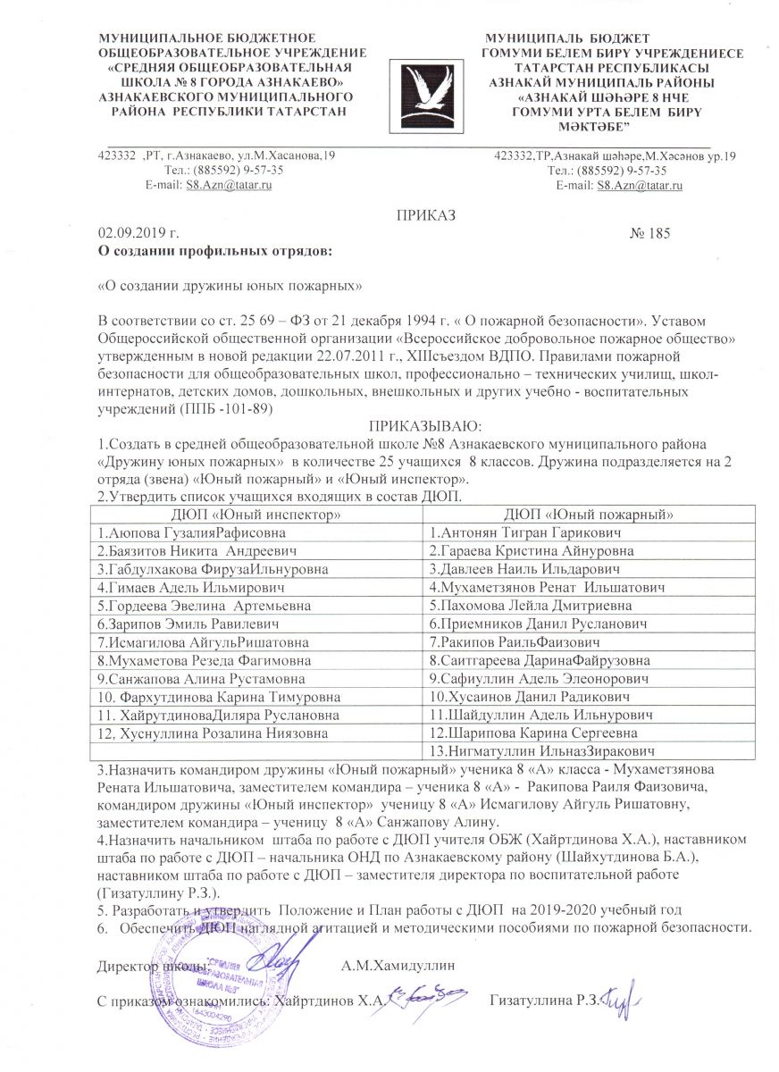 План работы отряда РДШ по МБОУ «СОШ №8 г.Азнакаево» на 2019-2020 учебный год