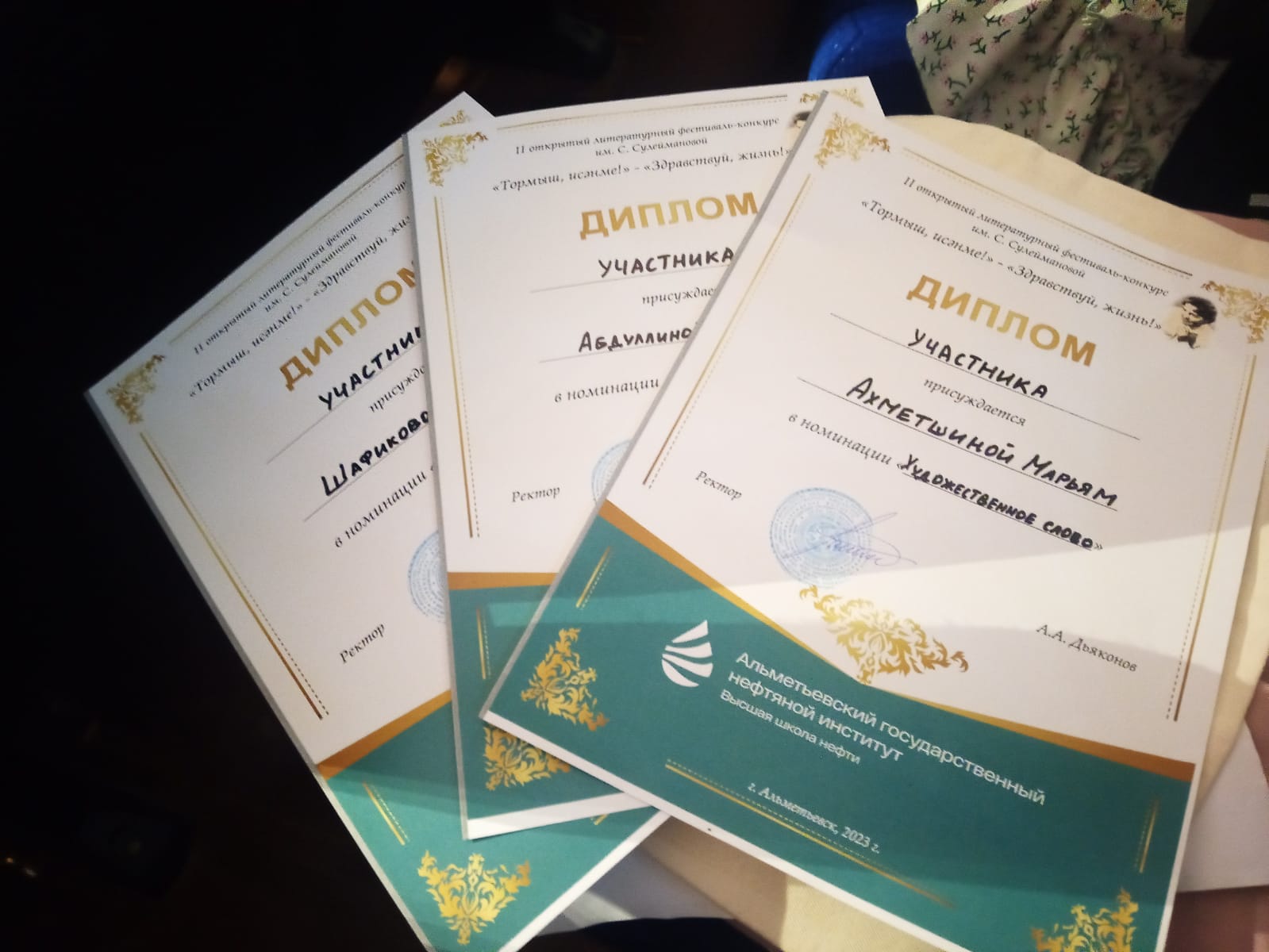 30 сентября 2023 года состоялось награждение участников Республиканского фестиваля студенческого творчества им.С.Сулеймановой «Тормыш, исәнме!» – «Здравствуй, Жизнь!». В фестивале принимали участие наши ученики. Организатором фестиваля является Альметьевский государственный нефтяной институт при поддержке фонда духовного возрождения «Рухият» ОАО «Татнефть», Союза писателей РТ и Альметьевского отделения Союза писателей РТ.