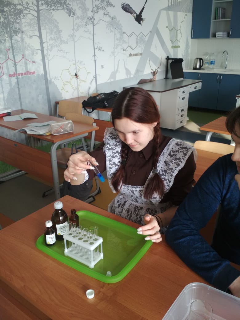 В химической лаборатории "Точка роста" проводится практическая работа "Спирты. Качественные реакции на спирты" в 10-х классах.